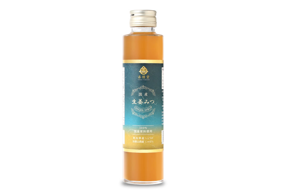 高知県産の生姜を50%以上配合した濃厚なジンジャーシロップです。鹿児島県産粗糖、和歌山県産じゃばら、国産蜂蜜と、原料の全てを国産にこだわりました。水も添加物も一切入れず、素材の旨みだけで仕上げました。